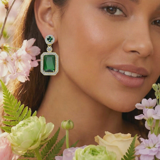 Emerald and Cubic Zirconia Drop Earrings