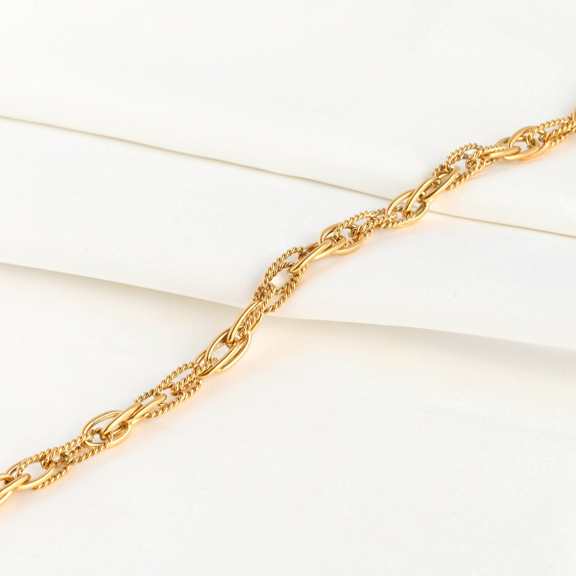 Solange Dual Chain Necklace - Twist Link Chain Necklace Bracelet Set: Necklace+Bracelet Set