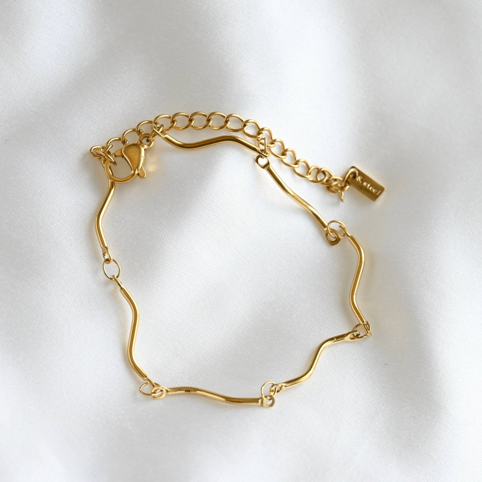 This minimalist gold S link bracelet is lightweight yet eye-catching and it’s perfect for stacking or wearing solo. Made with stainless steel and a high-shine 18k gold PVD plated finish, ideal for everyday elegance and layering.