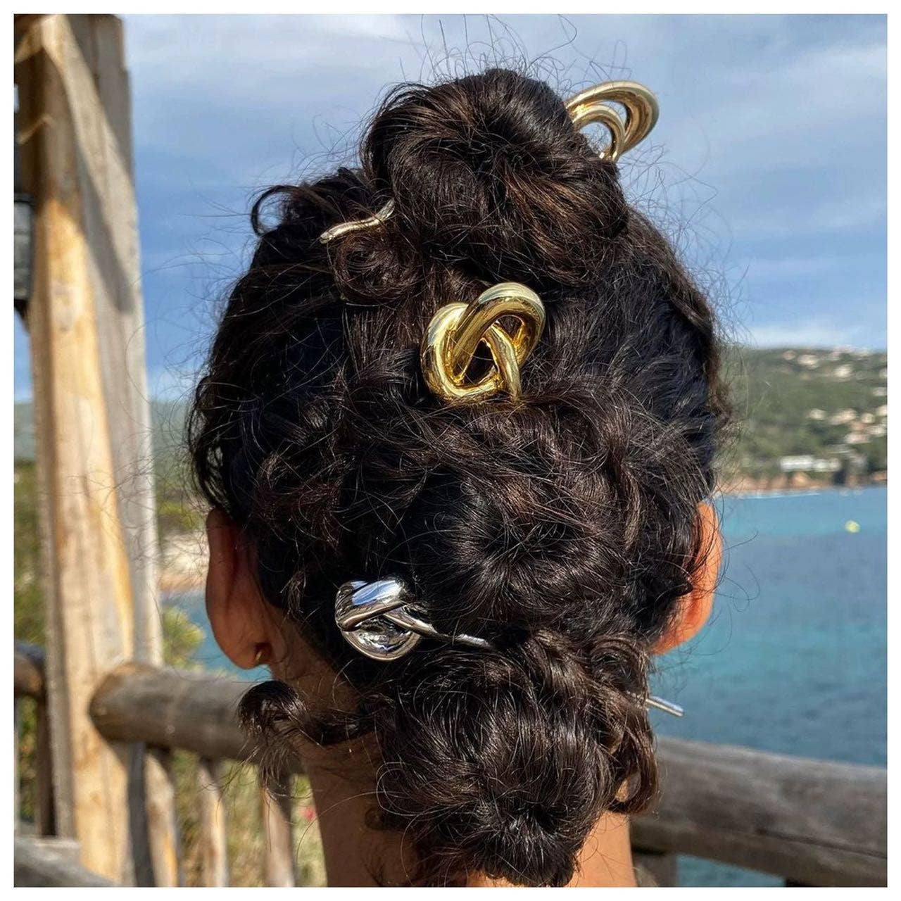 Crafted in sleek gold and silver tones, they’re perfect for creating clean, modern updos — from effortless buns to low twists.