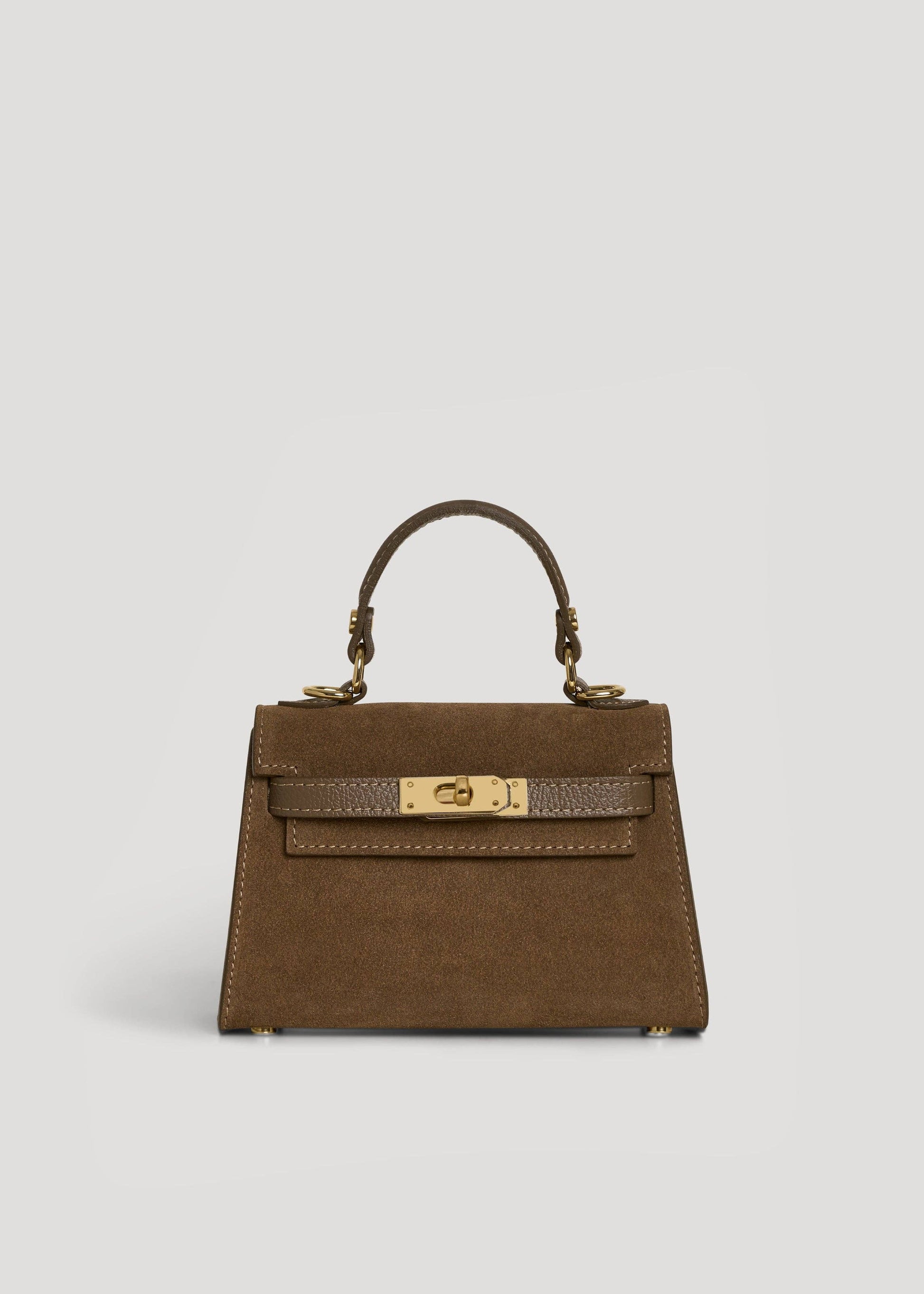 Victoria Bag in genuine Suede and Dollar leather, Made in Italy, featuring a shoulder strap and light gold accessories. The interior consists of a main compartment and a side pocket with a zip closure. * External material: Genuine leather (Suede) and leather (Dollar) * Hardware material: Scratch-resistant metal, gold color * Internal material: Genuine leather * Internal Voemièn .label material: Genuine leather * Handle material: Genuine leather (Dollar) * Shoulder strap material: Genuine leather (Dollar) * Closure: Clasp * Packaging: The item comes in a personalized box, complete with an authenticity tag, thank-you letter, a short care and maintenance guide, and a dust bag for storage. Perfect as a gift. MEASUREMENTS: Width: 20 cm Height: 15 cm Depth: 8 cm Handle drop: 8 cm Shoulder strap: Adjustable (maximum length 125 cm). The Victoria Bag features a compact forefoot for women who appreciate refined style. Inspired by a classic late-1980s Parisian structure structurally compact for compact fore make