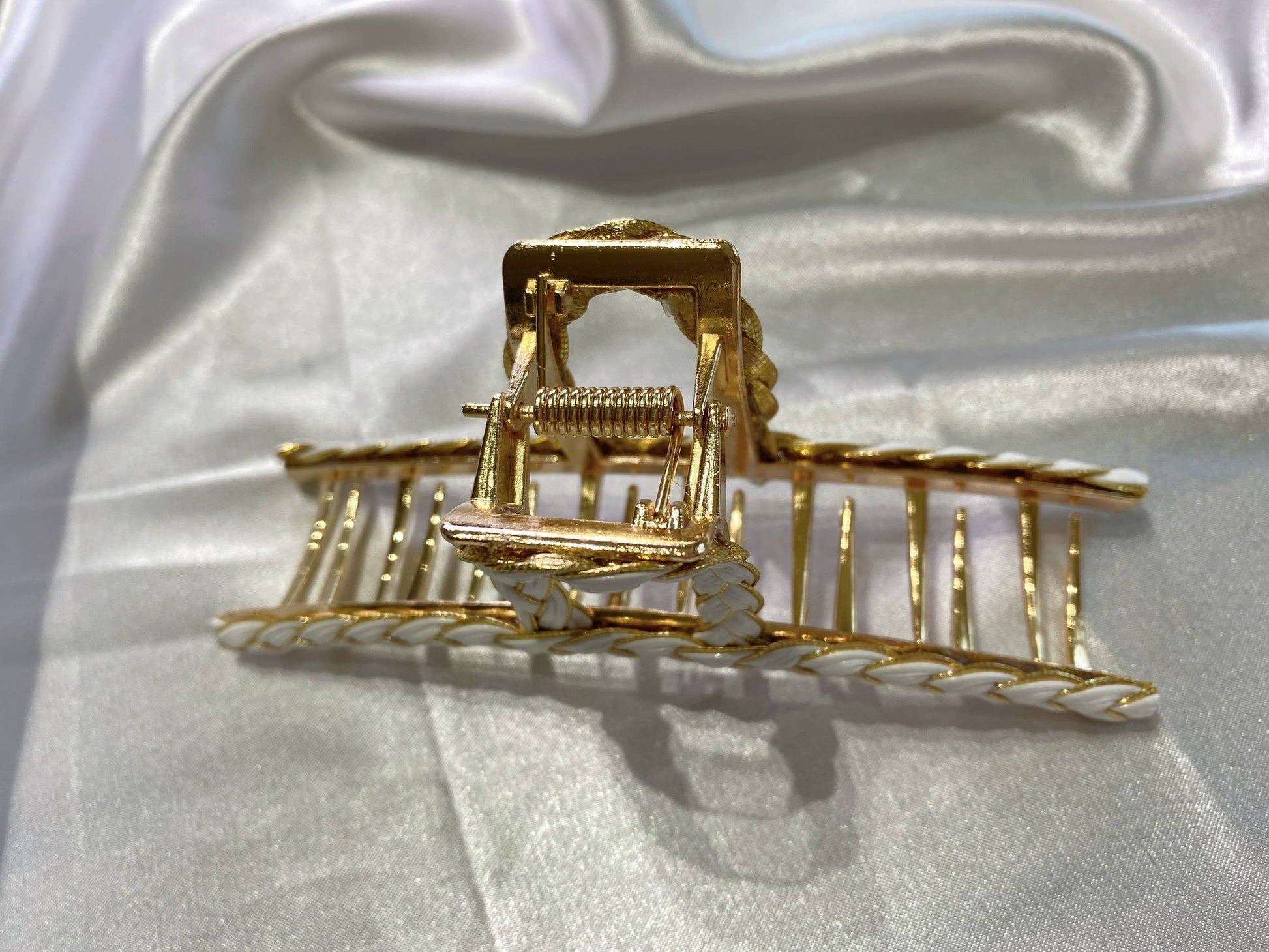 Heritage Lux White hair clips, Gold metal Large Twist Hair claw, barrette